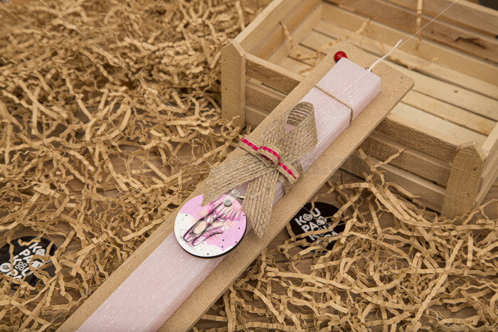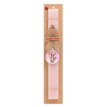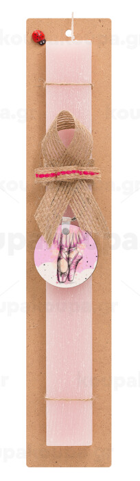 Ballerina shoes, Πασχαλινή Λαμπάδα με ξύλινο μπρελόκ & κερί αρωματικό πλακέ (30cm) (ΡΟΖ)