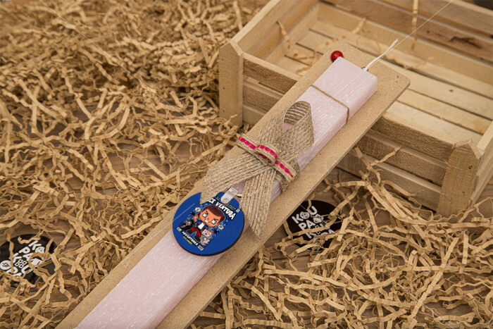 Ace Ventura: Pet Detective, Πασχαλινή Λαμπάδα με ξύλινο μπρελόκ & κερί αρωματικό πλακέ (30cm) (ΡΟΖ)