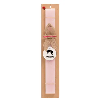 Ace Ventura Pet Detective, Πασχαλινή Λαμπάδα με ξύλινο μπρελόκ & κερί αρωματικό πλακέ (30cm) (ΡΟΖ)