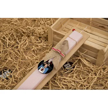 Eddie Munson, Πασχαλινή Λαμπάδα με ξύλινο μπρελόκ & κερί αρωματικό πλακέ (30cm) (ΡΟΖ)