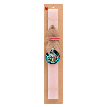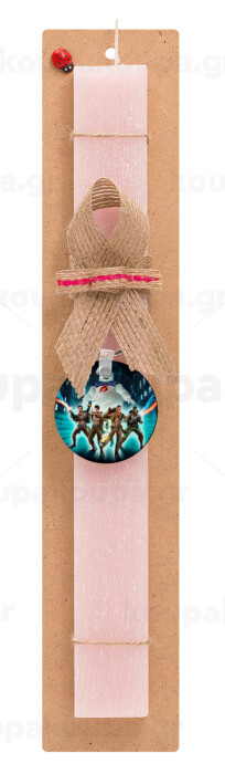 Ghostbusters team, Πασχαλινή Λαμπάδα με ξύλινο μπρελόκ & κερί αρωματικό πλακέ (30cm) (ΡΟΖ)