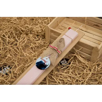 Why so serious?, Πασχαλινή Λαμπάδα με ξύλινο μπρελόκ & κερί αρωματικό πλακέ (30cm) (ΡΟΖ)