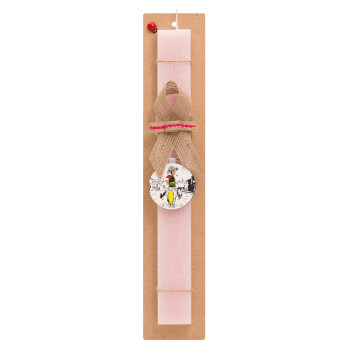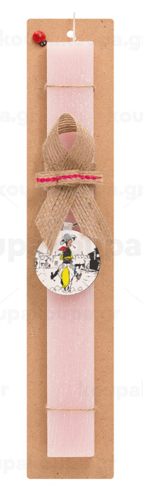 Λούκυ Λουκ comic, Πασχαλινή Λαμπάδα με ξύλινο μπρελόκ & κερί αρωματικό πλακέ (30cm) (ΡΟΖ)