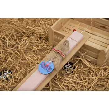 Πέππα το γουρουνάκι μπλε με όνομα, Πασχαλινή Λαμπάδα με ξύλινο μπρελόκ & κερί αρωματικό πλακέ (30cm) (ΡΟΖ)