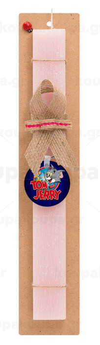 Τομ και Τζέρι, Πασχαλινή Λαμπάδα με ξύλινο μπρελόκ & κερί αρωματικό πλακέ (30cm) (ΡΟΖ)