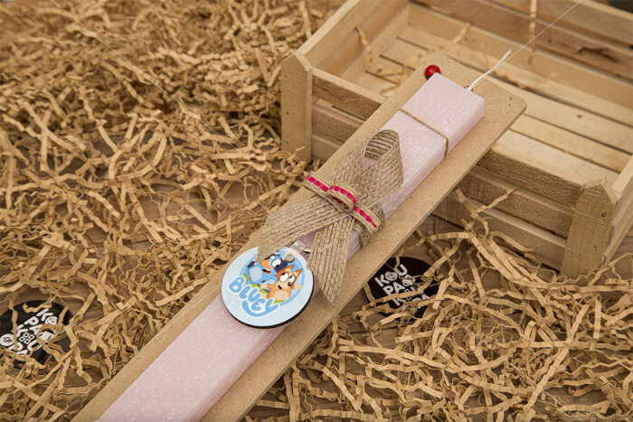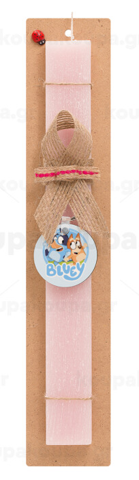 Μπλε, Πασχαλινή Λαμπάδα με ξύλινο μπρελόκ & κερί αρωματικό πλακέ (30cm) (ΡΟΖ)