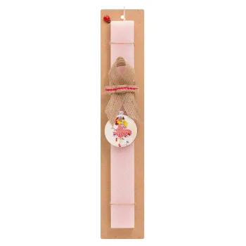 Candy, Πασχαλινή Λαμπάδα με ξύλινο μπρελόκ & κερί αρωματικό πλακέ (30cm) (ΡΟΖ)