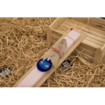 Huntrix Derpy the blue tiger, Πασχαλινή Λαμπάδα με ξύλινο μπρελόκ & κερί αρωματικό πλακέ (30cm) (ΡΟΖ)