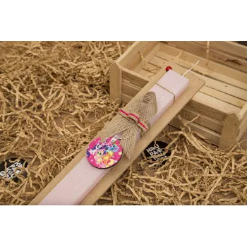 My Little Pony, Πασχαλινή Λαμπάδα με ξύλινο μπρελόκ & κερί αρωματικό πλακέ (30cm) (ΡΟΖ)