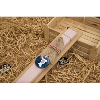 Never Grow UP, Πασχαλινή Λαμπάδα με ξύλινο μπρελόκ & κερί αρωματικό πλακέ (30cm) (ΡΟΖ)