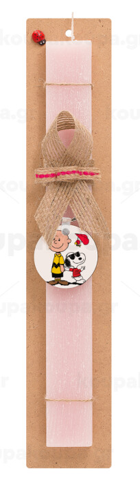 Snoopy & Joe, Πασχαλινή Λαμπάδα με ξύλινο μπρελόκ & κερί αρωματικό πλακέ (30cm) (ΡΟΖ)