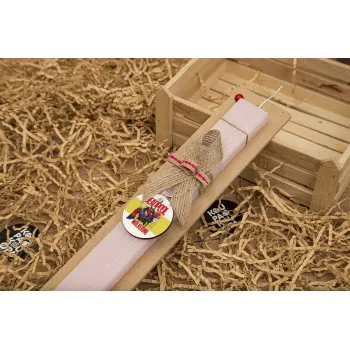 Superhero Deadpool Wolverine, Πασχαλινή Λαμπάδα με ξύλινο μπρελόκ & κερί αρωματικό πλακέ (30cm) (ΡΟΖ)