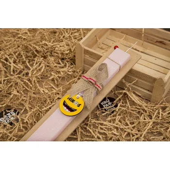 The minions, Πασχαλινή Λαμπάδα με ξύλινο μπρελόκ & κερί αρωματικό πλακέ (30cm) (ΡΟΖ)