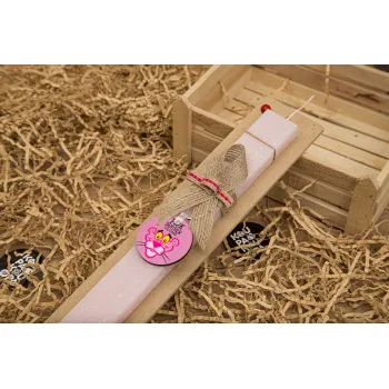 The pink panther, Πασχαλινή Λαμπάδα με ξύλινο μπρελόκ & κερί αρωματικό πλακέ (30cm) (ΡΟΖ)