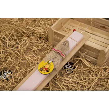 Γουίνι το Αρκουδάκι , Πασχαλινή Λαμπάδα με ξύλινο μπρελόκ & κερί αρωματικό πλακέ (30cm) (ΡΟΖ)