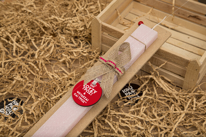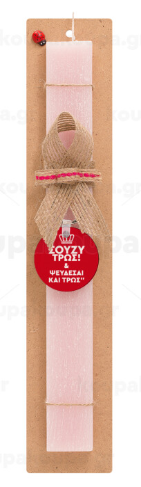 Σούζυ και ψεύδεσαι και τρως, Πασχαλινή Λαμπάδα με ξύλινο μπρελόκ & κερί αρωματικό πλακέ (30cm) (ΡΟΖ)