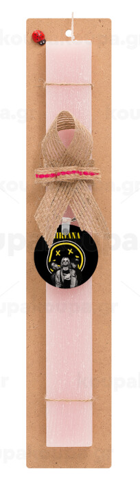 Nirvana, Πασχαλινή Λαμπάδα με ξύλινο μπρελόκ & κερί αρωματικό πλακέ (30cm) (ΡΟΖ)