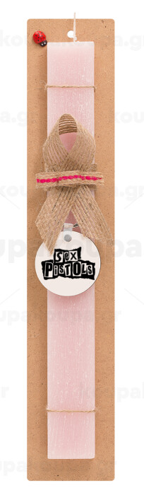 Sex Pistols, Πασχαλινή Λαμπάδα με ξύλινο μπρελόκ & κερί αρωματικό πλακέ (30cm) (ΡΟΖ)