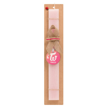 Twice, Πασχαλινή Λαμπάδα με ξύλινο μπρελόκ & κερί αρωματικό πλακέ (30cm) (ΡΟΖ)