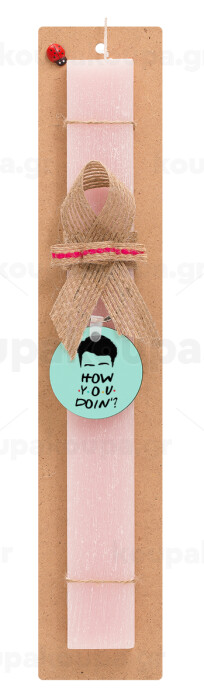 Friends how you doin?, Πασχαλινή Λαμπάδα με ξύλινο μπρελόκ & κερί αρωματικό πλακέ (30cm) (ΡΟΖ)