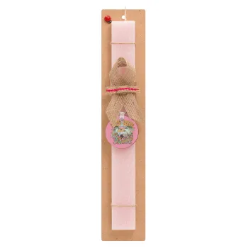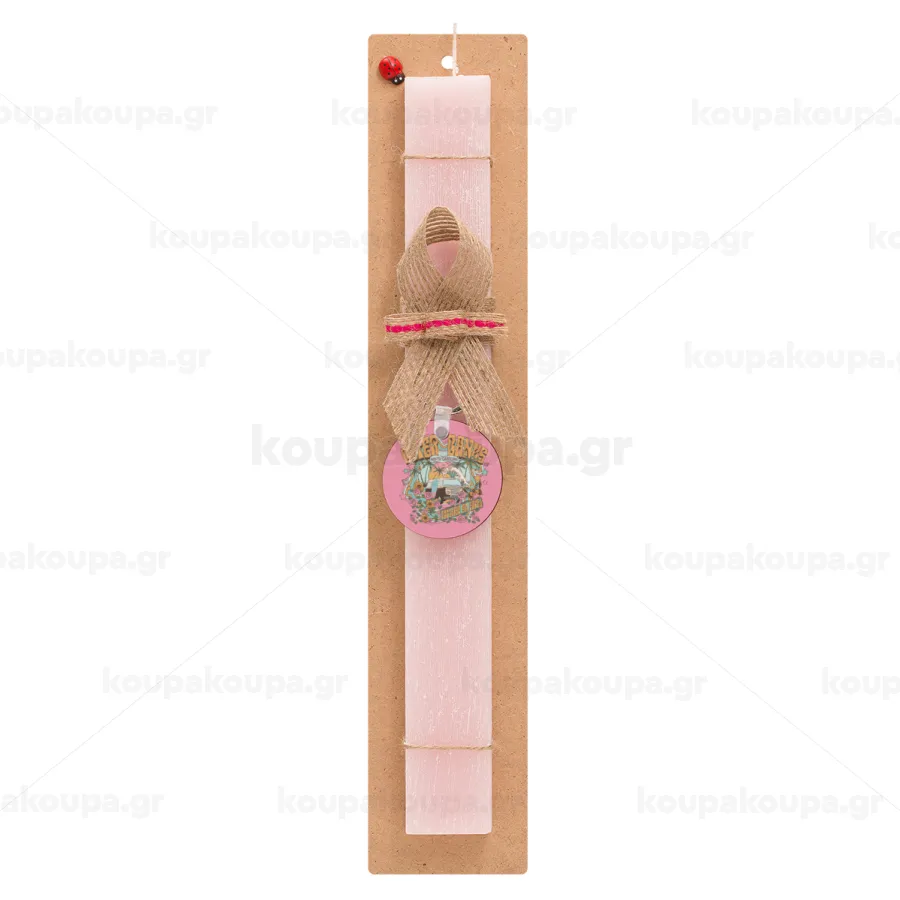 Outerbanks paradise on earth, Πασχαλινή Λαμπάδα με ξύλινο μπρελόκ & κερί αρωματικό πλακέ (30cm) (ΡΟΖ)