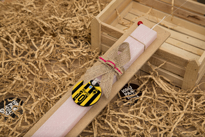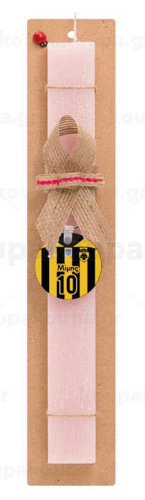ΑΕΚ εμφάνιση, Πασχαλινή Λαμπάδα με ξύλινο μπρελόκ & κερί αρωματικό πλακέ (30cm) (ΡΟΖ)