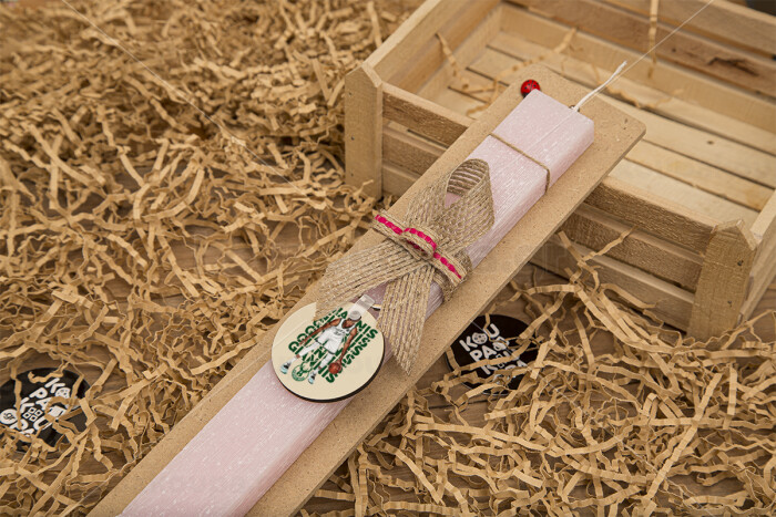Γιάννης Αντετοκούνμπο, Πασχαλινή Λαμπάδα με ξύλινο μπρελόκ & κερί αρωματικό πλακέ (30cm) (ΡΟΖ)