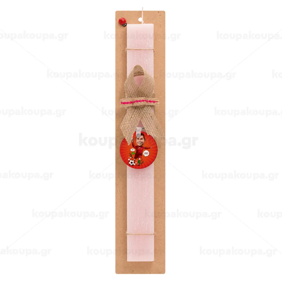 Cristiano Ronaldo, Πασχαλινή Λαμπάδα με ξύλινο μπρελόκ & κερί αρωματικό πλακέ (30cm) (ΡΟΖ)