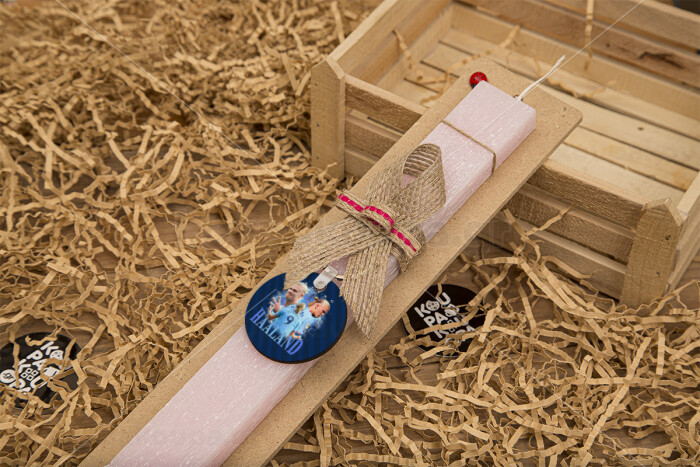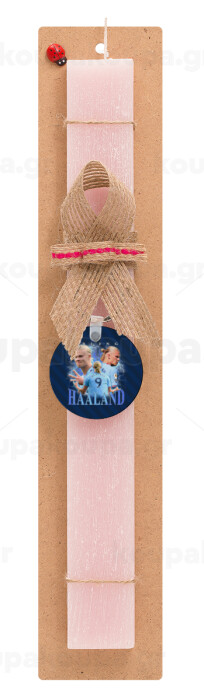 Erling Haaland, Πασχαλινή Λαμπάδα με ξύλινο μπρελόκ & κερί αρωματικό πλακέ (30cm) (ΡΟΖ)