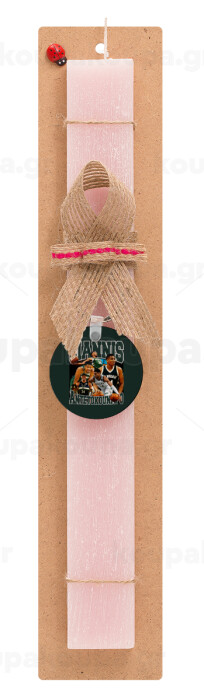 Giannis Antetokounmpo, Πασχαλινή Λαμπάδα με ξύλινο μπρελόκ & κερί αρωματικό πλακέ (30cm) (ΡΟΖ)