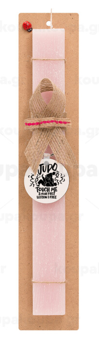Judo Touch Me And Your First Lesson Is Free, Πασχαλινή Λαμπάδα με ξύλινο μπρελόκ & κερί αρωματικό πλακέ (30cm) (ΡΟΖ)