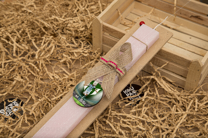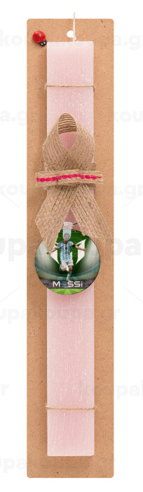 Λιονέλ Μέσι, Leo Messi, Πασχαλινή Λαμπάδα με ξύλινο μπρελόκ & κερί αρωματικό πλακέ (30cm) (ΡΟΖ)
