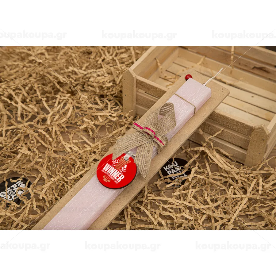 Europa Conference League WINNER, Πασχαλινή Λαμπάδα με ξύλινο μπρελόκ & κερί αρωματικό πλακέ (30cm) (ΡΟΖ)