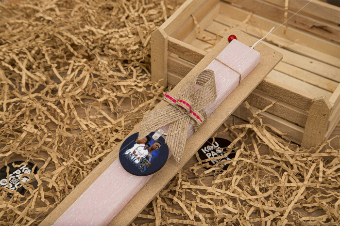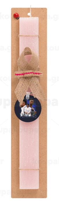 Vinicius Junior, Πασχαλινή Λαμπάδα με ξύλινο μπρελόκ & κερί αρωματικό πλακέ (30cm) (ΡΟΖ)