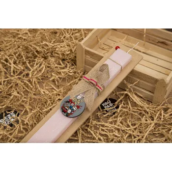 Halloween Inside out, Πασχαλινή Λαμπάδα με ξύλινο μπρελόκ & κερί αρωματικό πλακέ (30cm) (ΡΟΖ)