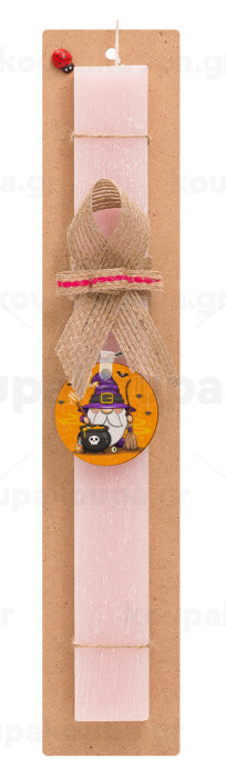 Happy Halloween (Χαλοουίν), Πασχαλινή Λαμπάδα με ξύλινο μπρελόκ & κερί αρωματικό πλακέ (30cm) (ΡΟΖ)