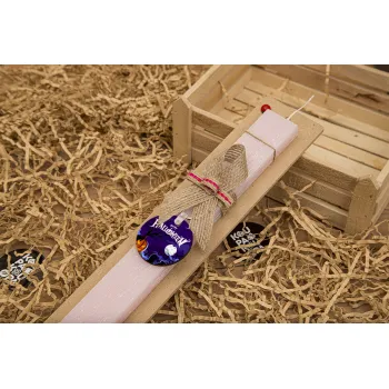 Happy Halloween cemetery, Πασχαλινή Λαμπάδα με ξύλινο μπρελόκ & κερί αρωματικό πλακέ (30cm) (ΡΟΖ)