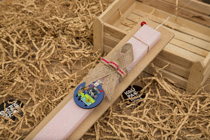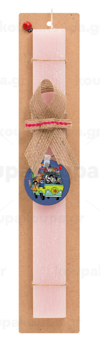 Stitch Halloween scooby car, Πασχαλινή Λαμπάδα με ξύλινο μπρελόκ & κερί αρωματικό πλακέ (30cm) (ΡΟΖ)