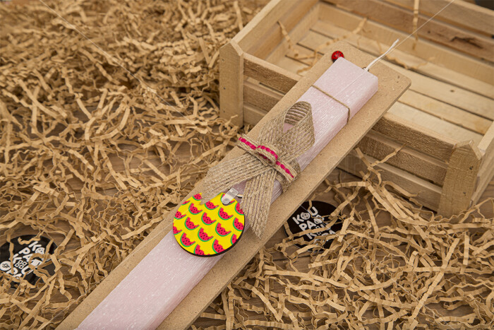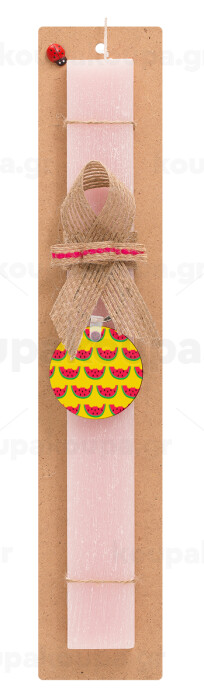 Καρπουζάκια, Πασχαλινή Λαμπάδα με ξύλινο μπρελόκ & κερί αρωματικό πλακέ (30cm) (ΡΟΖ)