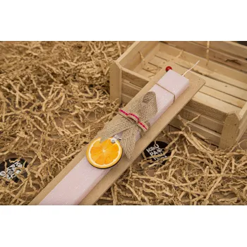 Πορτοκάλι, Πασχαλινή Λαμπάδα με ξύλινο μπρελόκ & κερί αρωματικό πλακέ (30cm) (ΡΟΖ)
