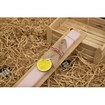 Λεμόνι, Πασχαλινή Λαμπάδα με ξύλινο μπρελόκ & κερί αρωματικό πλακέ (30cm) (ΡΟΖ)