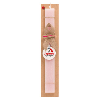 Σ΄ αγαπώ ως το τέρμα!!!, Πασχαλινή Λαμπάδα με ξύλινο μπρελόκ & κερί αρωματικό πλακέ (30cm) (ΡΟΖ)