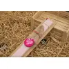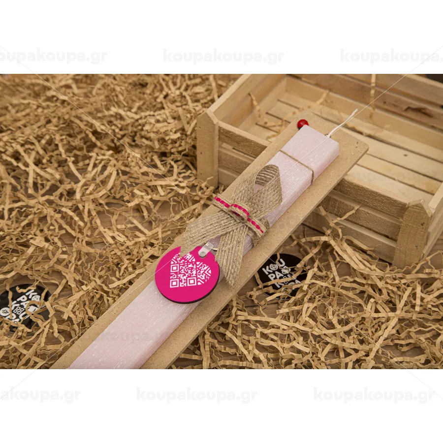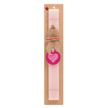 Heart hidden MSG, try me!!!, Πασχαλινή Λαμπάδα με ξύλινο μπρελόκ & κερί αρωματικό πλακέ (30cm) (ΡΟΖ)