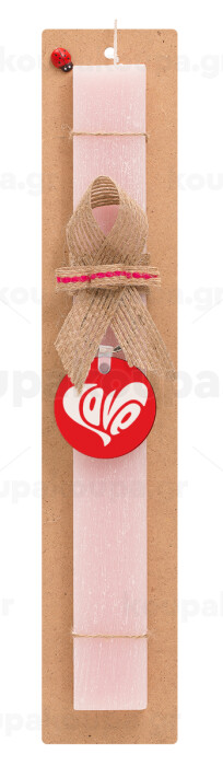 Love, Πασχαλινή Λαμπάδα με ξύλινο μπρελόκ & κερί αρωματικό πλακέ (30cm) (ΡΟΖ)