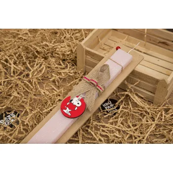 Snoopy takemy heart, Πασχαλινή Λαμπάδα με ξύλινο μπρελόκ & κερί αρωματικό πλακέ (30cm) (ΡΟΖ)