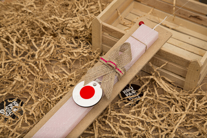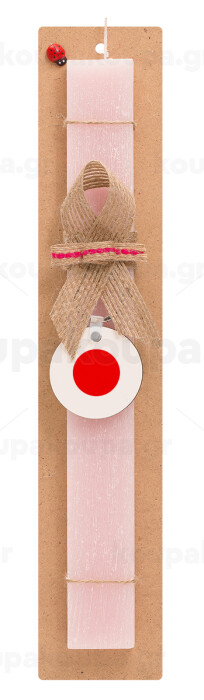 Japan flag, Πασχαλινή Λαμπάδα με ξύλινο μπρελόκ & κερί αρωματικό πλακέ (30cm) (ΡΟΖ)