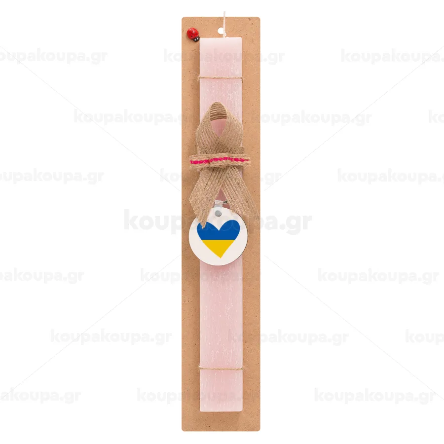UKRAINE heart, Πασχαλινή Λαμπάδα με ξύλινο μπρελόκ & κερί αρωματικό πλακέ (30cm) (ΡΟΖ)