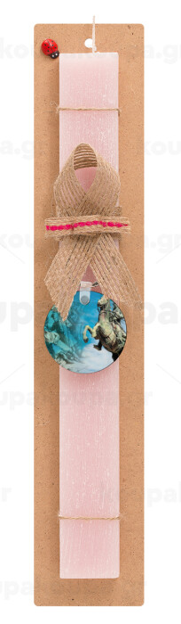 25η Μαρτίου 1821, Πασχαλινή Λαμπάδα με ξύλινο μπρελόκ & κερί αρωματικό πλακέ (30cm) (ΡΟΖ)