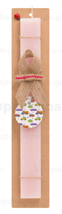 Αμαξάκια, Πασχαλινή Λαμπάδα με ξύλινο μπρελόκ & κερί αρωματικό πλακέ (30cm) (ΡΟΖ)