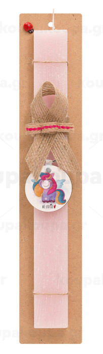 Μονόκερος, Πασχαλινή Λαμπάδα με ξύλινο μπρελόκ & κερί αρωματικό πλακέ (30cm) (ΡΟΖ)